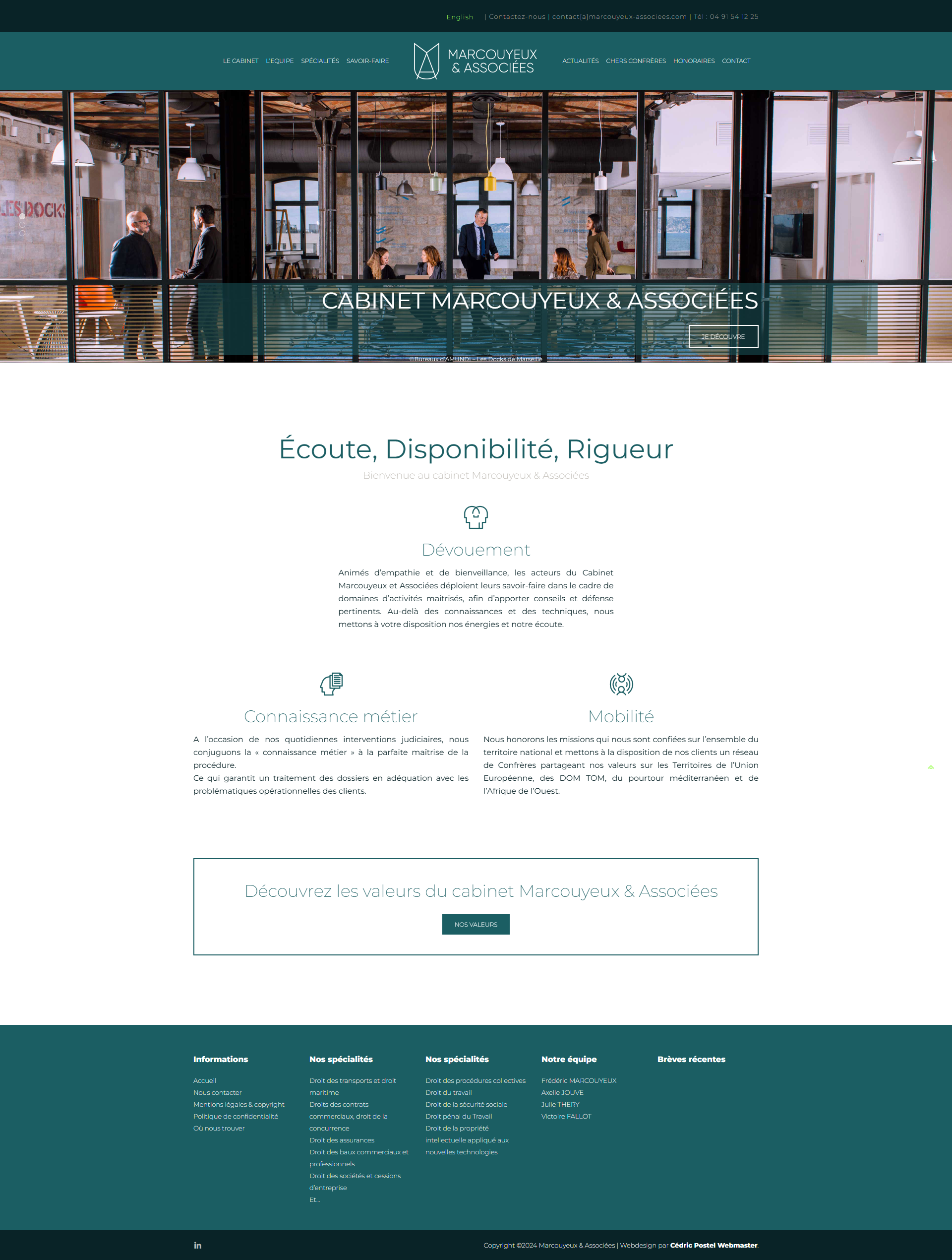 Site wordpress. Site vitrine du cabinet d’avocat Marcouyeux .et Associés à Marseille.