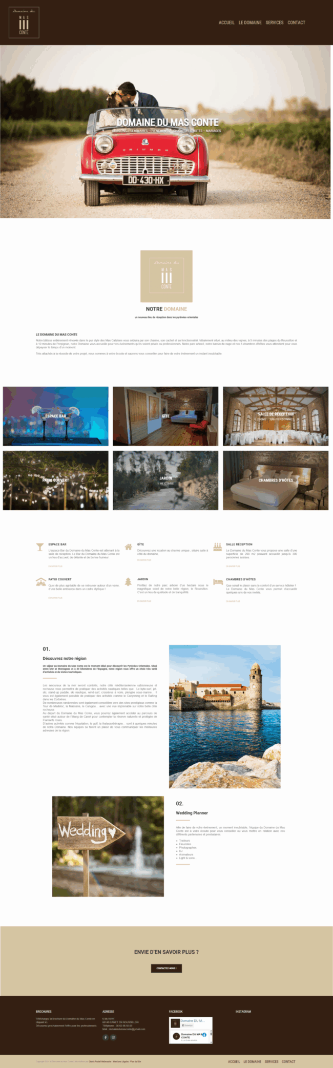 Site vitrine Wordpress. Site web du domaine du Mas Conte, salle de réunion, séminaire, chambre d’hôte et gite.